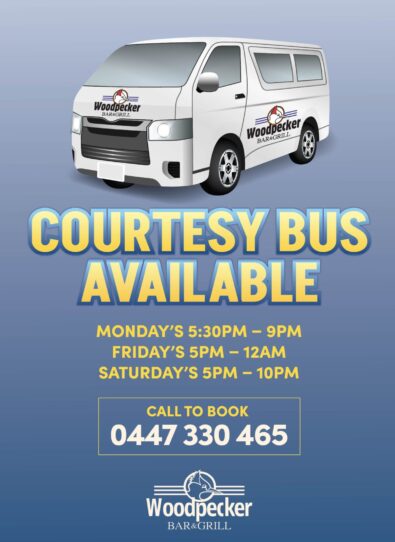 Located in Burpengary Meadows, Woodpecker Bar and Grill is a fun and friendly pub with modern facilities and good old fashioned service. Our family Bistro is open 7 days a week, for lunch and dinner. With great food and friendly staff, Woody’s is the perfect choice for any meal occasion, be it, a family dinner, a catch up with friends, or a cosy romantic dinner for two. Enjoy the great social atmosphere of bar & grill, with Sky Racing, TAB, and Keno. Our Gaming Lounge features 30 of the latest gaming machines including the famous Lightning Link, Dragon Link. Take advantage of our courtesy bus, running every Friday and Saturday from 5pm till late and bookings for groups must have 7 days notice.